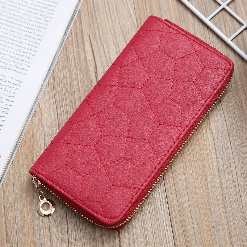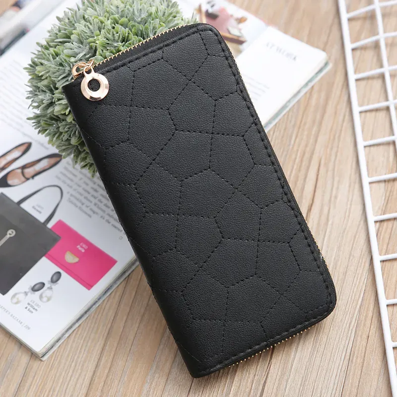 Multi-Card Women Casual Zipper Design Stone Pattern Solid Color Large Capacity Purse
