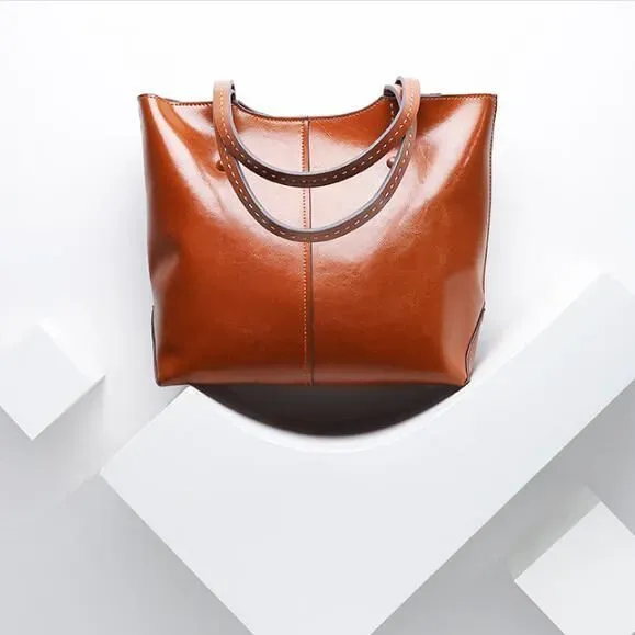 Women Commute Large Capacity Good Quality Genuine Leather Tote Bag