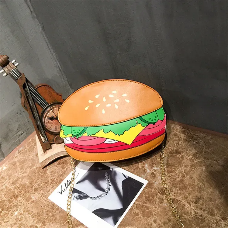 Women Creative Hamburger And French Fries Metal Chain Crossbody Bag