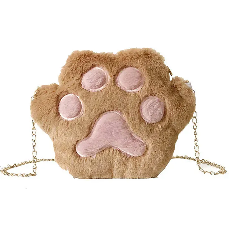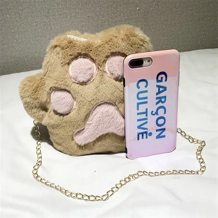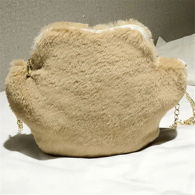 Women Cute Plush Metal Chain Zipper Crossbody Bag