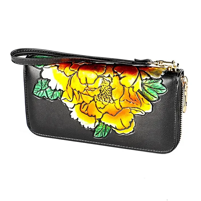 Women Fashion Embossing Decorative Zipper Leather Purse