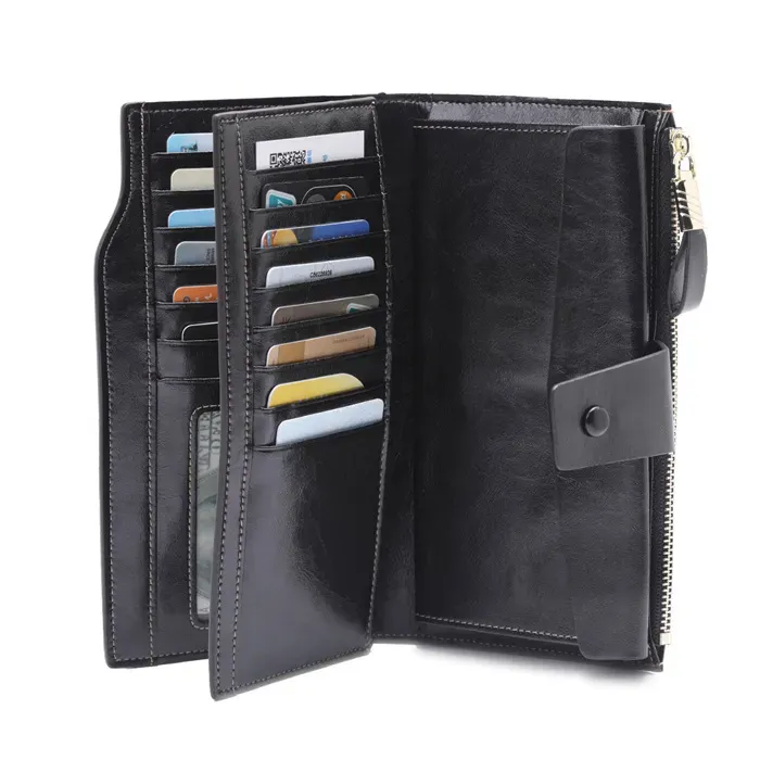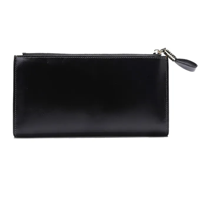 Women Simple Solid Color Antimagnetic Zipper Leather Purse